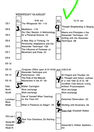 Correction: Selection forms: here should be a box connected with Tuesday B2 and Wednesday B2 - Using Ourselves in Water (27). This workshop can be selected by writing a number in front of the title.